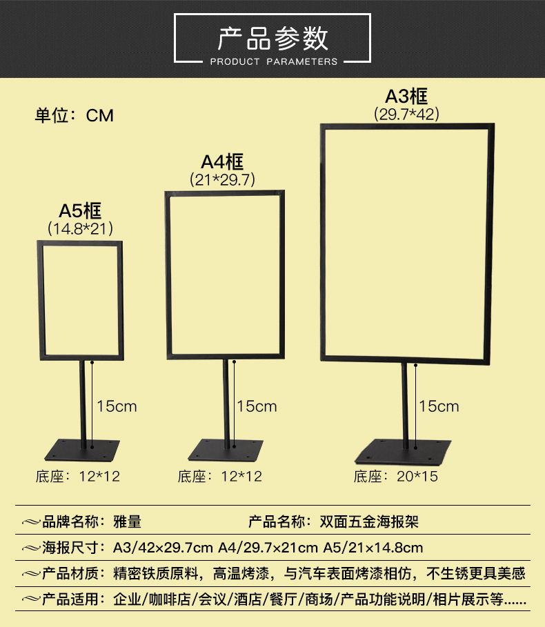 雅量a3 A5金属广告海报展示架kt板台面立式促销pop立牌服装店餐厅五金框 雅量店配商城